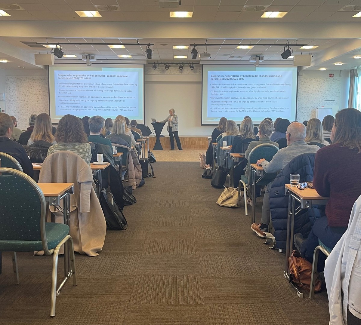FACT-Ung i Sandnes er et helsetilbud for barn og unge fra 12-18 år, der man ved behov kan følge opp til 24 år. På fagdagen fortalte teamleder Åse Knudsen Vatne om tilbudet, som i dag har oppfølging med 32 ungdommer som er henvist fra BUP.